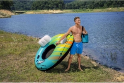 Profitez de l’été en toute tranquillité sur la bouée gonflable avec dossier de Bestway. Le siège spacieux avec fond en maille offre une agréable fraîcheur, le porte-gobelet intégré garde votre boisson à portée de main et les poignées robustes assurent la stabilité lors de l’embarquement comme du repos. Le matériau PVC résistant, le dossier gonflable confortable et le sac/glacière pour boissons pratique font de cette bouée le compagnon idéal pour la piscine, le lac ou la rivière.