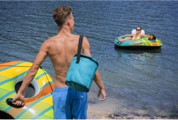 Sa structure en PVC résistant est prête pour la saison estivale et supporte jusqu’à 90 kg. Le coffret comprend également une rustine pour une maintenance rapide ainsi qu’un sac/glacière pratique pour y ranger des rafraîchissements pour tout l’après-midi.