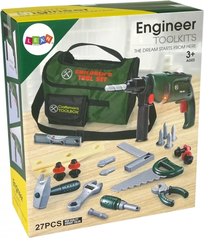 Stimulez l’imagination et les compétences des petits bricoleurs avec un set d’outils complet dans un sac résistant. Il comprend une perceuse réaliste à piles avec effets sonores et marche arrière, une scie, un marteau, un tournevis, une clé à molette, une pince multiprise et d’autres accessoires. Grâce au plastique léger et sûr, les outils sont adaptés aux petites mains, tandis que le sac en textile avec poignée et bandoulière facilite le transport et le rangement.