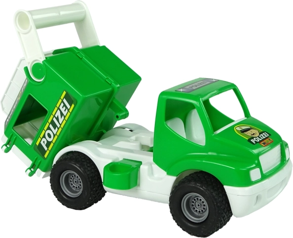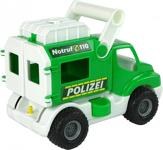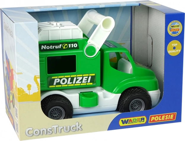 La voiture de police ConsTruck verte de la marque Polesie est un jouet robuste pour les enfants dès 1 an. Elle propose des roues en caoutchouc avec bande de roulement pour une meilleure adhérence, des portes arrière et un compartiment supérieur ouvrants pour cacher des trésors et des figurines. Le verrou latéral de la remorque et la benne basculante garantissent des heures de jeu et favorisent le développement de la motricité fine et de la pensée logique. Fabriqué avec des matériaux sûrs et certifiés, doté du certificat CE.