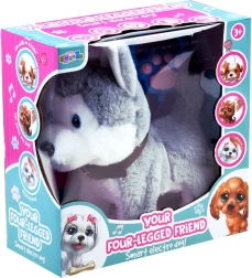 Ce mignon husky en peluche interactif fera plaisir à chaque enfant. Après avoir connecté la boucle en forme de patte, il commence, sur simple pression, à marcher, remuer la queue et bouger la tête. Il réagit aux caresses en aboyant et joue de la musique joyeuse, ce qui favorise l’empathie, le sens des responsabilités et le développement de la motricité fine.