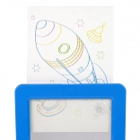 La tablette lumineuse magique de couleur bleue transforme chaque dessin en expérience. Il suffit d’insérer un gabarit, de repasser les lignes avec les feutres néon et d’appuyer sur le bouton – le dessin s’illumine et, avec les lunettes 3D fournies, prend du relief. Une fois terminé, essuyez simplement avec un chiffon et recommencez.