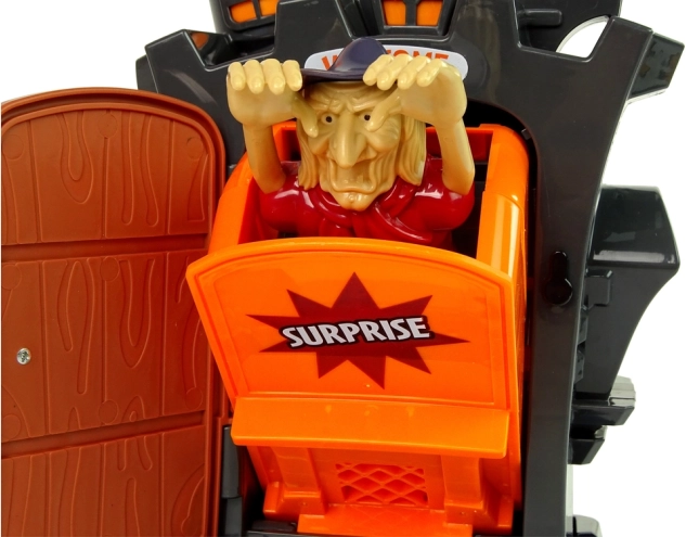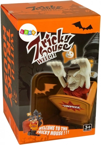 Ce jeu de société palpitant est idéal pour les soirées d’automne et les fêtes d’Halloween. Les joueurs tournent successivement l’aiguille de la roulette (1–5), appuient autant de fois sur le bouton à l’arrière de la maison puis ouvrent la porte. Celui qui fait surgir la sorcière perd – et tout le monde s’amuse !