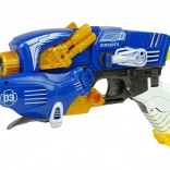 Le jouet est de couleur bleue et offre une longue portée de tir. L’emballage comprend un ptérosaure qui se transforme facilement en pistolet. La cible fournie améliore la précision et permet de marquer des points. Faites la compétition avec vos amis et voyez qui a la meilleure visée !