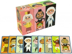Comment fonctionne le jeu ? L’ensemble contient 9 cartes, chaque face de carte montrant un personnage différent. De même, les cubes ont 6 faces avec différentes têtes ou bustes. Votre tâche est d’assortir les personnages selon les cartes, ce qui demande concentration, imagination et raisonnement logique. Ces activités développent l’enfant de multiples façons, en aidant à reconnaître les formes, les couleurs et les personnages. La plupart des cartes représentent des personnages de contes de fées ou des professions contemporaines.