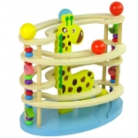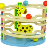 Ce toboggan coloré dispose de quatre niveaux sur lesquels les billes roulent, captivant l’attention des enfants par sa forme et son mouvement. Chaque élément est soigneusement poli et peint avec des couleurs vives et sûres. La structure en bois assure une durabilité longue durée et un jouet qui résistera pendant de nombreuses années.