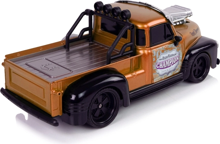 La voiture possède une construction légère et robuste ; des éléments comme le compresseur sur le capot ou les autocollants lui confèrent un caractère sportif. Les pneus en caoutchouc garantissent une excellente adhérence sur la route pendant la conduite. La télécommande incluse permet de diriger le petit modèle grâce à deux boutons indépendants pour avancer/reculer et tourner.
