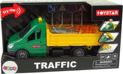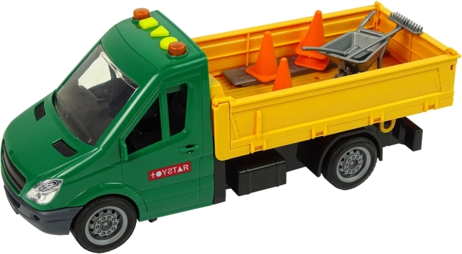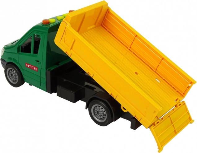 Ce camion routier finement détaillé aux couleurs vert et jaune attire l’attention des enfants au premier regard. Grâce à la propulsion à friction, il suffit de pousser le véhicule pour qu’il avance tout seul. La benne basculante et le châssis extensible facilitent le chargement et le transport de tous les accessoires.