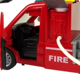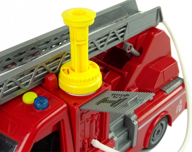 Le camion de pompier est équipé d'un système qui permet de pulvériser de l'eau à partir du tuyau, offrant ainsi aux enfants un jeu réaliste.