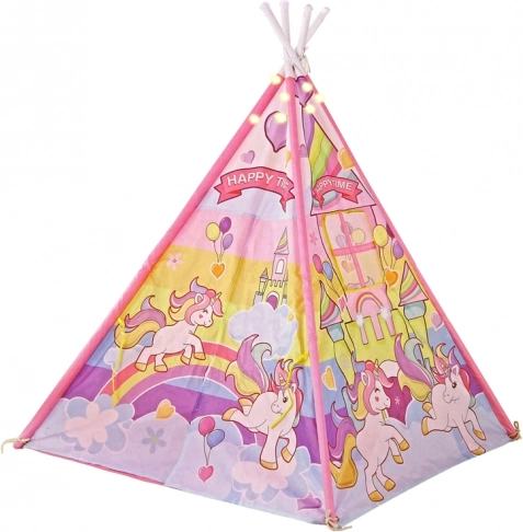 La tente se monte facilement et offre aux enfants un espace pour s'amuser ou se reposer après une journée fatigante. Son toit est décoré de motifs de joyeuses licornes et de châteaux colorés qui stimulent l'imagination des enfants.