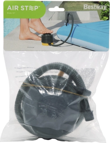 Pompe à pied BESTWAY pratique de 13 cm de hauteur pour le gonflage rapide des matelas, bateaux et jouets gonflables. Elle offre un gonflage rapide, 3 embouts interchangeables, un tuyau flexible et un format compact et léger. Un matériau résistant et un volume de 500 cm³ (0,5 l) garantissent une utilisation confortable à la maison comme en déplacement.