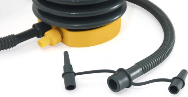 Un tuyau flexible et un jeu de 3 embouts interchangeables sont inclus, pour gonfler sans difficulté des matelas gonflables, jouets de piscine, ballons ainsi que de petits bateaux. Un volume de 500 cm³ (0,5 l) par course aide à apporter l’air nécessaire rapidement et efficacement.