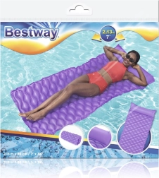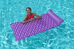 Le matelas flottant Bestway se distingue par sa forme confortable avec oreiller intégré qui soutient la tête et la nuque. Sa surface ondulée augmente le confort en position allongée, tandis que le PVC robuste assure une longue durée de vie et une bonne résistance aux petits dommages.