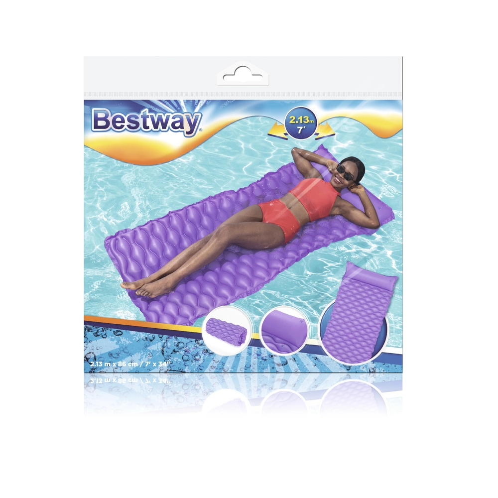 Profitez d’une détente paisible sur l’eau avec ce matelas de plage gonflable Bestway aux dimensions 213 × 86 cm. Grâce à l’oreiller intégré et à sa surface ondulée, il offre un confort maximal et une stabilité sur l’eau. Le matériau PVC résistant, le roulage facile pour le transport et la rustine incluse en font le compagnon idéal pour la piscine comme pour la plage.