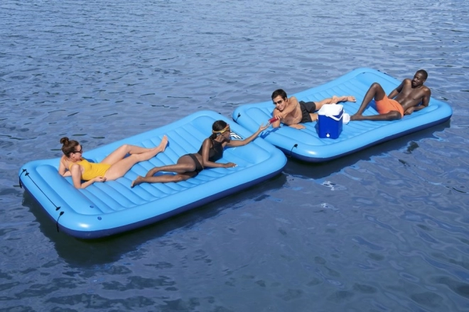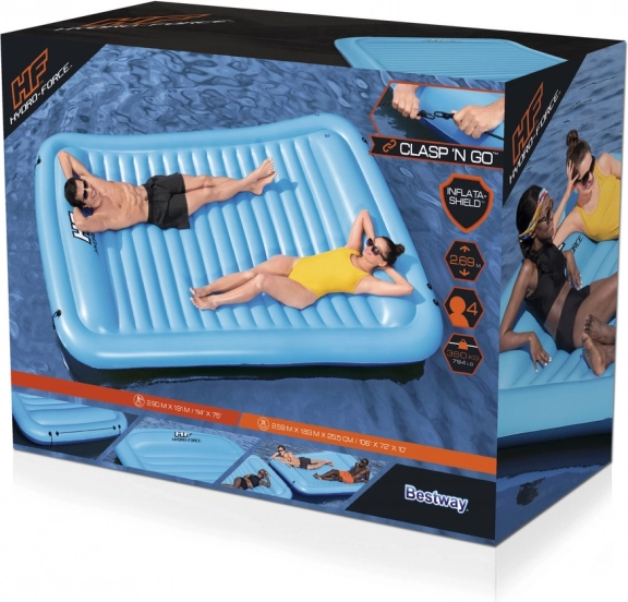 La grande île flottante gonflable Hydro-Force Sun Soaker de la marque Bestway est conçue pour ceux qui aiment passer leurs vacances en plus grand comité. Grâce à ses dimensions impressionnantes, elle peut accueillir facilement jusqu’à quatre adultes et, avec son coussin intégré tout autour du pourtour, chacun peut bronzer confortablement au soleil. Les attaches Clasp 'N Go intégrées permettent de relier plusieurs îles flottantes entre elles, offrant encore plus de plaisir avec des amis en plus grand groupe ! Le matériau Inflata-Shield assure une résistance aux perforations et limite l’étirement.