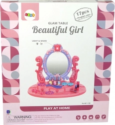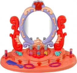 La coiffeuse cache des fonctions étonnantes comme des effets lumineux et sonores. Il suffit d'appuyer sur la fleur au centre du miroir pour activer des sons magiques et un spectacle lumineux sous forme d'éclairage de la rose en rouge. Grâce à cela, chaque petite fille se sentira comme dans un conte de fées.