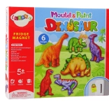 Moule avec formes de dinosaures, plâtre, 6 peintures, pinceau, aimants, instructions