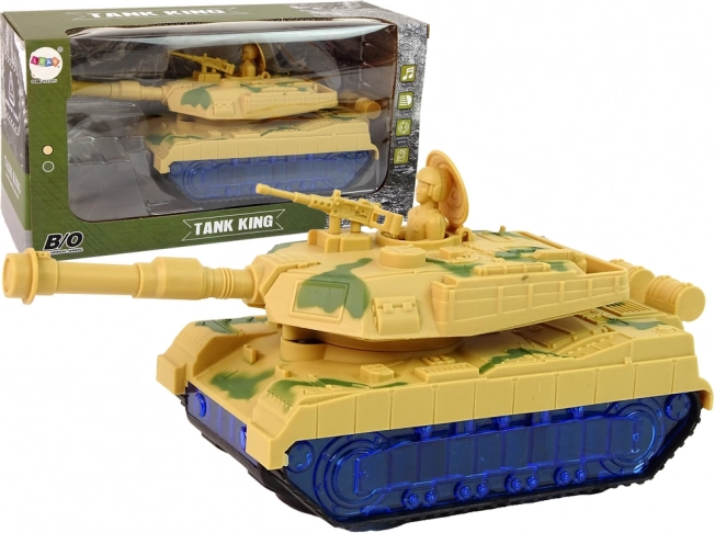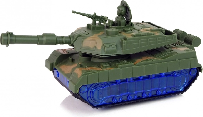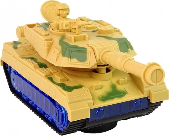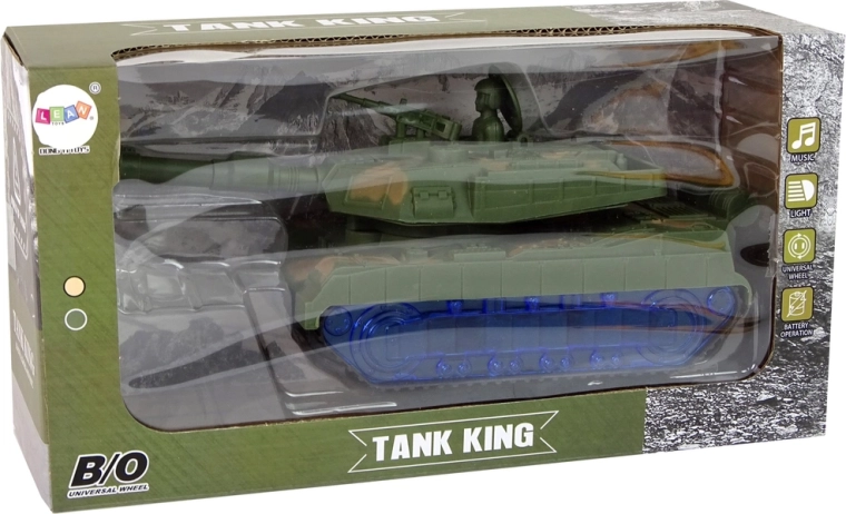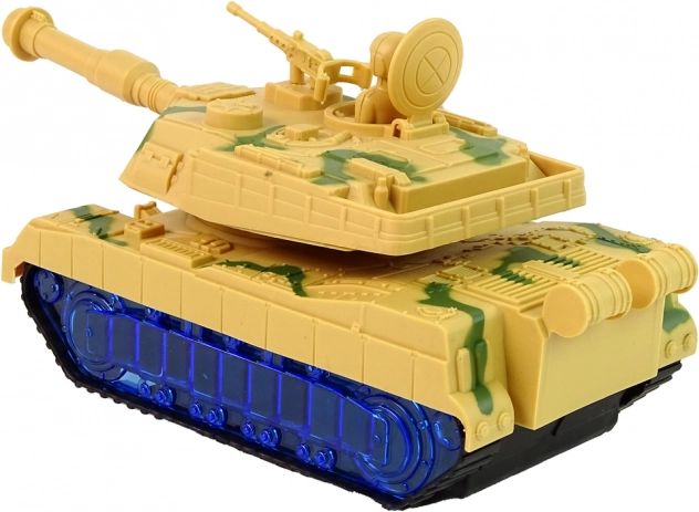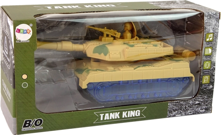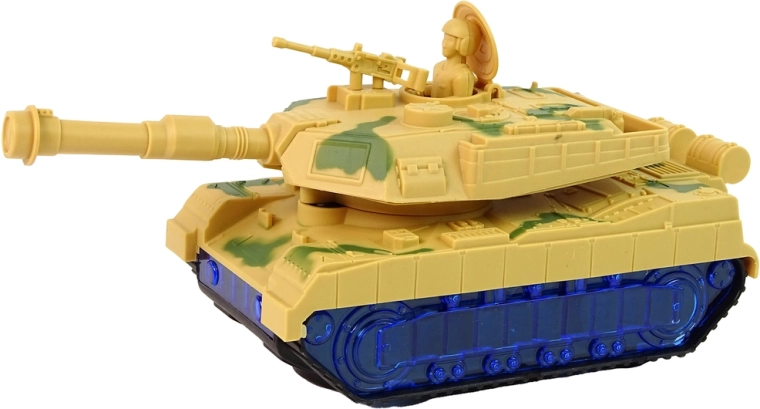 Le char arbore un camouflage de guerre et des chenilles qui imitent la conduite d’un véritable char. Surprise : les roues s’illuminent en bleu grâce à des LED. Une fois allumé, le canon pivote de gauche à droite et l’on entend le son du moteur en arrière-plan. Chaque détail rappelle un véhicule réel. Le char est l’un des alliés d’une petite bataille.