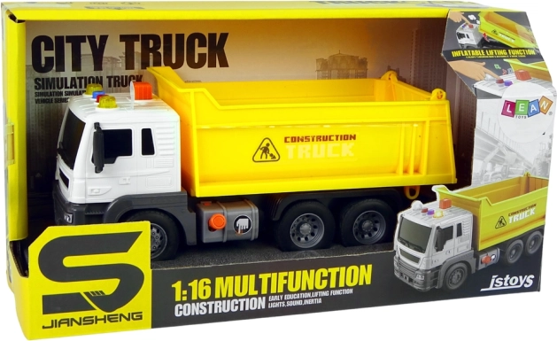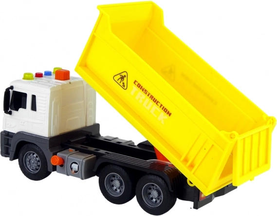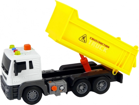 En appuyant sur un bouton, vous levez ou abaissez facilement la benne pour gérer le chargement et le déchargement comme sur un vrai chantier.