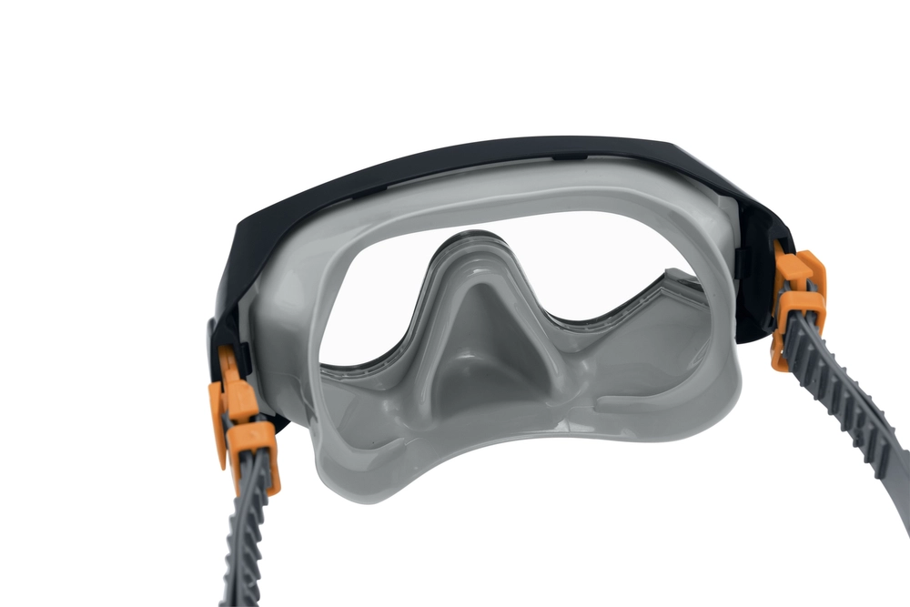 Le masque avec lentilles en polycarbonate antichoc et protection UV assure une excellente visibilité et sécurité sous l’eau.