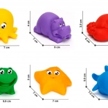 Faites plaisir à votre enfant avec notre set ludique contenant des jouets multicolores en forme d’animaux marins. Ces jouets peuvent être utilisés non seulement au bain, mais aussi comme un excellent outil pour reconnaître les couleurs, apprendre les noms des animaux et faire ses premiers pas en calcul. Ils développent la motricité, stimulent le langage, l’imagination et la créativité de l’enfant.