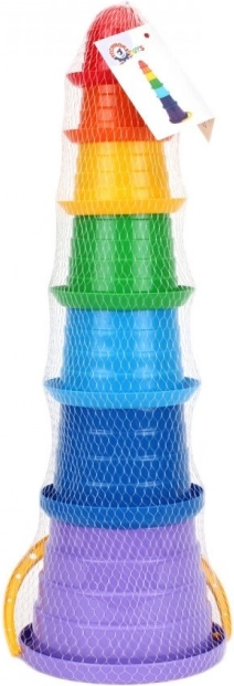La pyramide aux couleurs de l’arc‑en‑ciel est un jouet idéal pour le développement des tout‑petits. Elle se compose de gobelets de différentes couleurs. La partie supérieure du jouet comporte le plus petit gobelet. Ils sont fabriqués dans un matériau sûr et non toxique, reconnu pour sa robustesse et sa résistance. La pyramide présente une forme très simplifiée et arrondie, ce qui contribue au niveau de sécurité d’utilisation de cet objet.