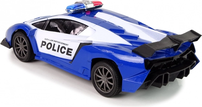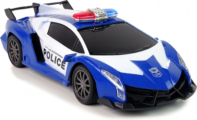 Partez en poursuite policière avec cette voiture RC sportive bleue et blanche. Les gyrophare(s) LED réalistes et le look dynamique stimulent l’imagination des enfants, tandis que la télécommande ergonomique garantit un pilotage fluide et précis. Excellent choix de cadeau – emballé dans une boîte cadeau avec fenêtre et certification CE.