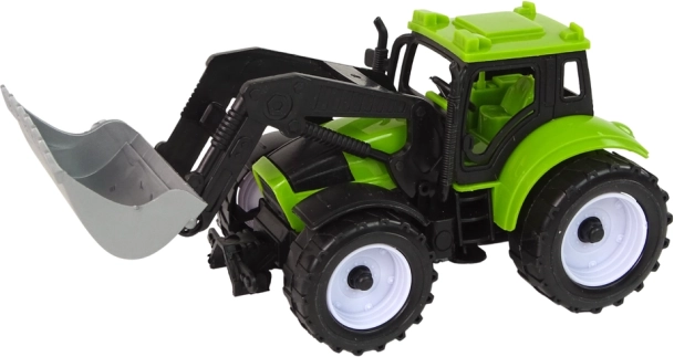 Le tracteur est équipé d’un chargeur frontal pouvant être levé et abaissé. Parfait pour charger du « grain » ou du sable et développer la motricité fine.