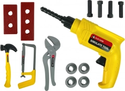 Un set pratique avec perceuse, vis, écrous et petites « planches » en imitation bois développe la coordination œil-main et encourage le jeu créatif.