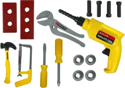 Le set comprend une perceuse simulée, un marteau, une scie et une pince – le tout dans une finition qui rappelle de vrais outils et encourage l’imitation des adultes.