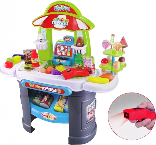 Supermarché pour enfants avec scanner et aliments