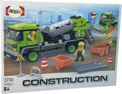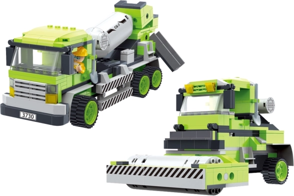 Les blocs sont fabriqués en plastique durable. Ils bénéficient d'un grand nombre de pièces mobiles et de possibilités de création autonome. La phase suivante est le jeu, où vous pouvez transformer les véhicules finis en votre propre chantier. La bétonnière avec un "tambour" rotatif, des portes ouvrantes ou le véhicule avec un rouleau rotatif fascinera les enfants pendant des heures !