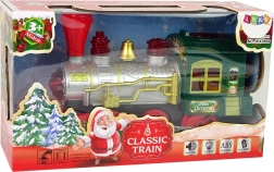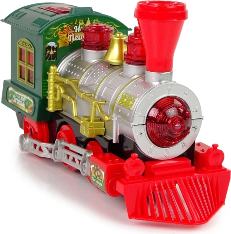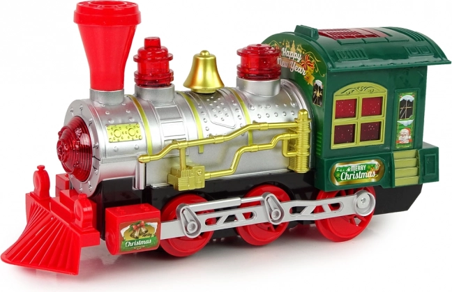 La locomotive est conçue avec de belles couleurs vives et des détails festifs rappelant l'atmosphère de Noël.