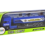 Le look du camion s’inspire de véhicules réels conçus pour la route et permet à chaque petit collectionneur d’enrichir sa collection. Le design bleu uniforme avec les inscriptions blanches « POLICE » offre un aspect réaliste. La citerne est facile à manipuler et permet une grande capacité de manœuvre.