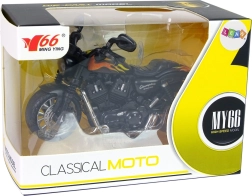 Cette moto est soigneusement détaillée, dotée de roues en caoutchouc assurant une excellente adhérence et de pièces en plastique avec autocollants. Le mécanisme à rétrofriction permet un déplacement facile : tirez vers l’arrière puis relâchez. En appuyant sur la surface, les effets lumineux et sonores s’activent, créant une impression de conduite réaliste.