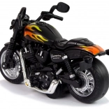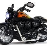 Cette moto est soigneusement détaillée, dotée de roues en caoutchouc assurant une excellente adhérence et de pièces en plastique avec autocollants. Le mécanisme à rétrofriction permet un déplacement facile : tirez vers l’arrière puis relâchez. En appuyant sur la surface, les effets lumineux et sonores s’activent, créant une impression de conduite réaliste.