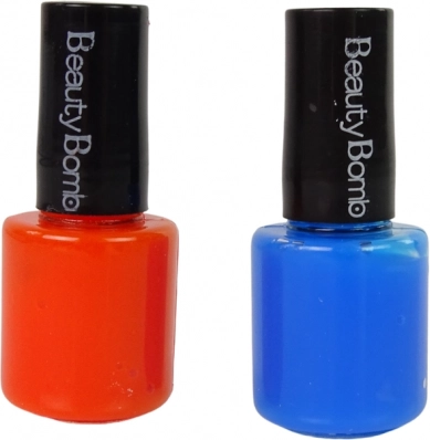 Le kit comprend deux vernis à ongles – l’un orange et l’autre bleu, qui donnent aux ongles un look vif et lumineux.