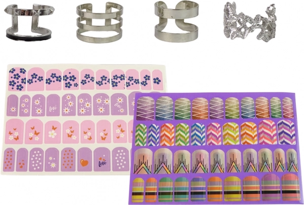 Des autocollants et des bagues de différentes formes et motifs offrent d’innombrables possibilités pour une décoration d’ongles créative.