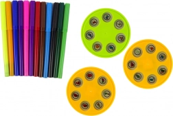 Le projecteur est fourni avec un ensemble de feutres de couleur et trois dias avec tampons pour plus de variété et de créativité.
