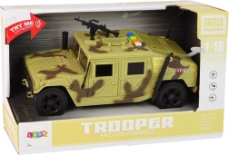 Créé pour les petits soldats admirant la technologie militaire. Ce véhicule militaire possède un large châssis et un design réaliste incluant une mitrailleuse sur le toit, imitant une véritable voiture militaire. Rendre le jeu vivant avec des effets sonores incluant klaxon, tirs et démarrage du moteur, accompagnés de phares avant pour une authenticité accrue dans le jeu.