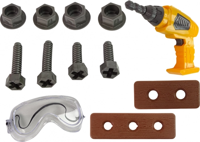 Ce coffret est équipé d’une perceuse à batterie qui simule un véritable perçage et émet des sons réalistes. Il comprend également des clés, un tournevis, un marteau et d’autres outils pour un jeu créatif. Toutes les pièces sont rangées en toute sécurité dans un emballage coloré qui évoque de véritables outils.