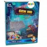 La tâche consiste à déterrer, à l’aide de 3 outils, les gemmes cachées dans le bloc de plâtre.