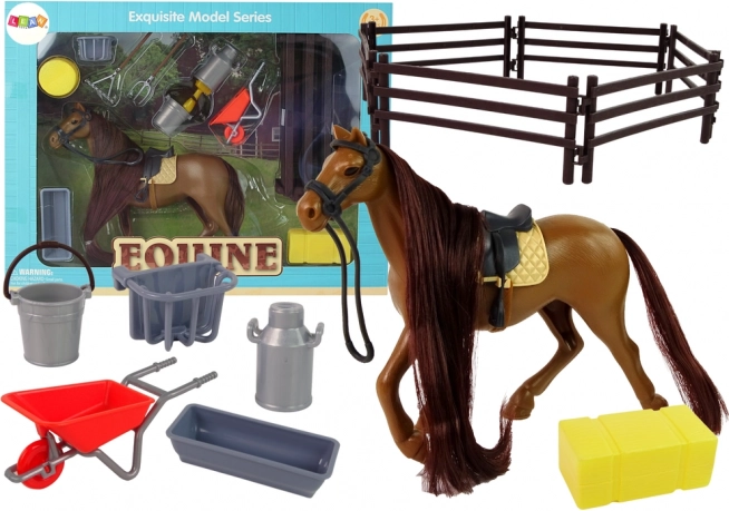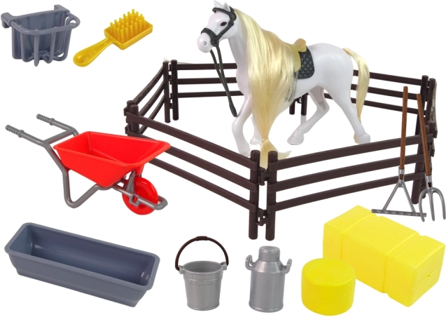 La figurine de cheval est très réaliste et tous les composants sont fabriqués en plastique de qualité, idéal pour les petites mains d'enfants. Le produit est disponible en deux variantes de couleurs - cheval blanc et cheval marron, ce qui ajoute au potentiel de jeu.