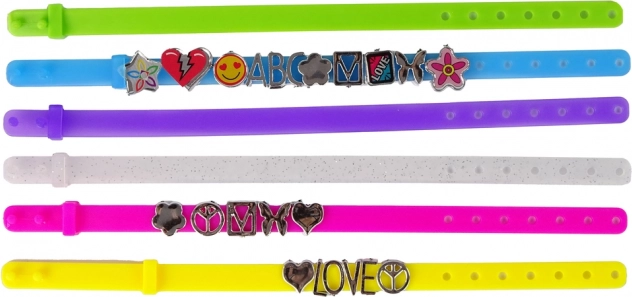 Comprend des lettres de A à Z, diverses formes et 6 lanières de bracelet avec fermeture simple.