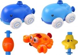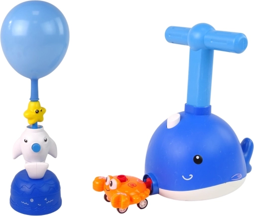 Choisissez d’abord un ballon selon la couleur et placez-le sur la voiture. Ensuite, connectez la voiture au lanceur en forme de dauphin et, à l’aide du levier, gonflez le ballon. Une fois le ballon gonflé, appuyez sur le bouton GO du lanceur et la voiture sera propulsée vers l’avant. Observez la vitesse à laquelle elle traverse la pièce. Vous pouvez choisir des voitures en forme d’animaux marins, comme le dauphin ou le crabe.