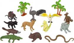 Le set comprend un kangourou, un koala, un crocodile, un émeu, un perroquet, un serpent, un ornithorynque, un wombat, un diable de Tasmanie, un lézard, un renard du désert, 2 petits arbres et un rocher – tout pour créer votre propre monde australien.