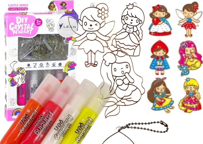 Set de pendentifs vitraux à peindre – princesses, 6 pcs
