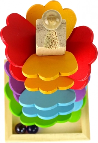 Placez une bille au sommet et observez-la rebondir délicatement sur chaque feuille jusqu’à la base – un jeu qui favorise le suivi visuel et la coordination.