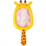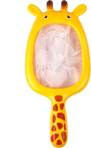Un filet en forme de girafe avec une poignée confortable pour attraper les animaux dans l'eau de manière ludique.