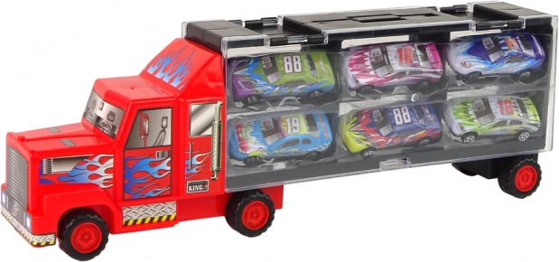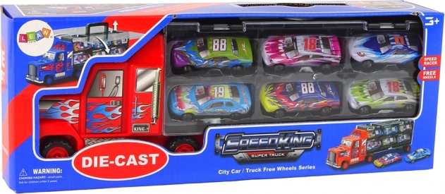 - Le coffret comprend : 1x camion, 6x voitures de course.